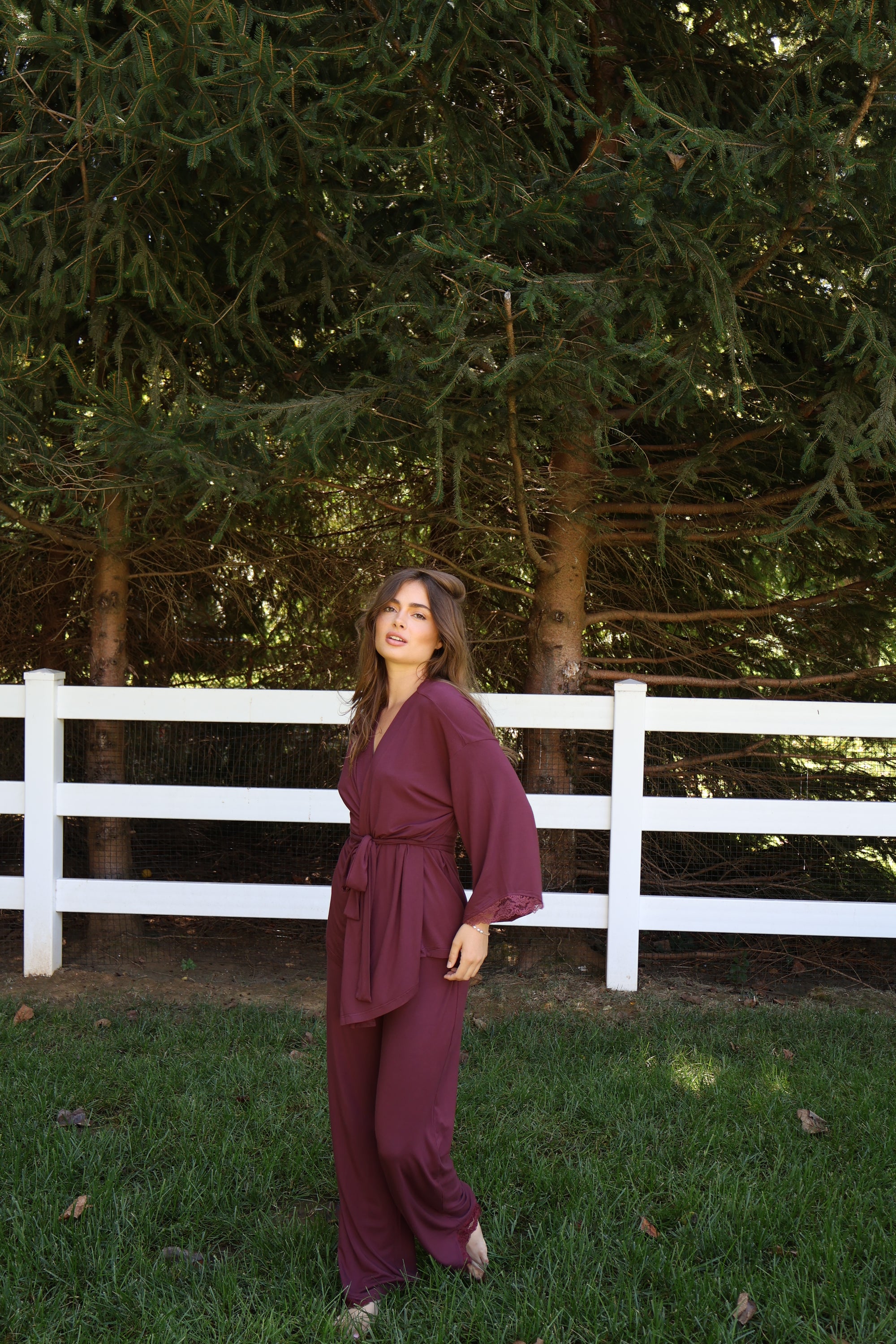 Riley Kimono Bamboo Pajama Set in Merlot