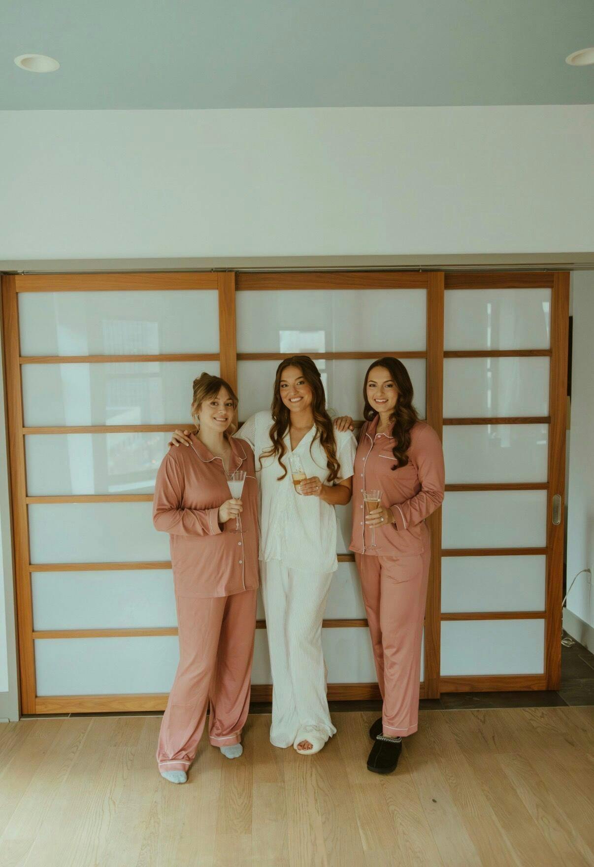 The button-down top features elegant mother-of-pearl buttons and a relaxed shape that pairs effortlessly with the matching cropped pants. The fluid fit is relaxed enough for cozy moments with your bridal party, yet polished enough to dress up with heels or accessories for dinner, drinks, or honeymoon exploring. It’s the perfect combination of laid-back ease and understated glamour—designed to take you from wedding morning mimosas to newlywed nights in.